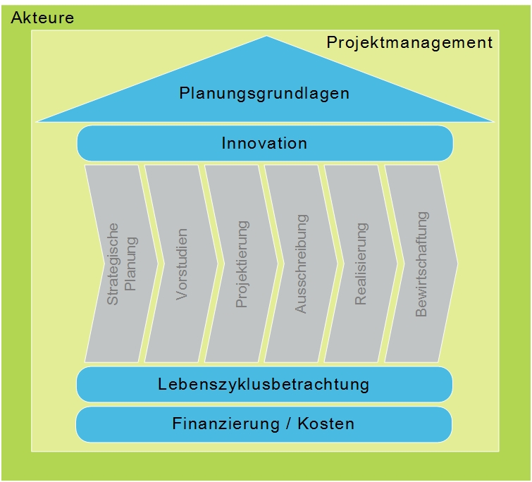 Verortet werden die Inhalte an der bekannten Phasenstruktur des SIA Leistungsmodels 112 – ersichtlich an der obigen Grafik.